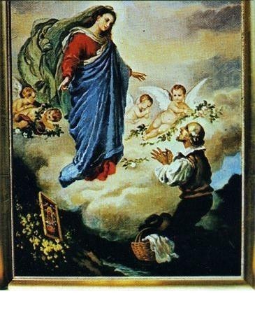 Il 2 luglio 1557 era una giornata molto calda e un popolano di nome Giovanni Chichizola, di ritorno da un viaggio a Genova, dove aveva venduto le sue mercanzie, arrivato sul monte Leto (monte di Ponzema) si accomodò all'ombra di uno sperone per un breve riposo. Dopo un breve sonno egli scorse vicino a sè una fonte di acqua limpidissima e accanto una tavoletta con raffigurato Il "Transito di Maria SS."