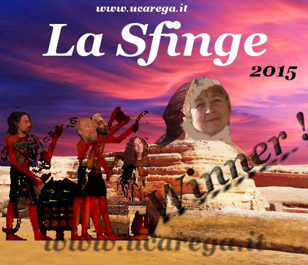 È Patrizia la vincitrice della "Sfinge",il gioco di ucarega.it che ci ha tenuto compagnia per tutto l'inverno con oltre 70 quiz e 13 quiz jolly.Dopo un lungo duello ccon Giovanni R.(ottimo secondo) e l'outsider Paola F.(terza) i suoi avversari più agguerriti alla fine Patrizia ha dilagato andando a vincere con oltre 80 punti di distacco,dimostrando,grazie alla sua conoscenza e anche tanto alla sua attenzione e rapidità di essere una campionessa purosangue.Quante volte infatti si è aggiudicata i punti in palio anticipando,a volte anche di un solo minuto,i suoi avversari,ma unplauso và a tutti coloro che hanno partecipato al quiz,quante volte noi della redazione nello scegliere e montare i quiz abbiamo detto :"questa non la sanno di sicuro| e invece c'era sempre qualcuno pronto a rispondere esattamente ai quesiti più difficili,complimenti a tutti !!!